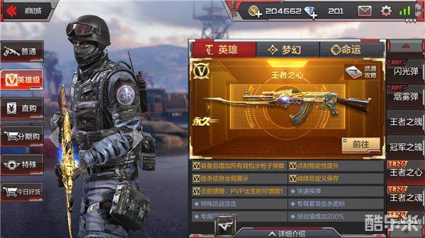 最后登场的是稀有度超高的一把枪械,他就是AK47王者之心,这把枪通体金黄,各项指标均与其他枪械持平的情况下,在换弹速度和射击速度方面都数一数二,另外,他有一个十分恐怖的技能,那就是连杀信息全局展示,试想一下,刚刚连续淘汰对方多人的信息展示给敌方的幸存者,这是多么恐怖的王的威慑。最后王者之心还对点射的稳定性进行了进一步优化,可谓是十分强力!