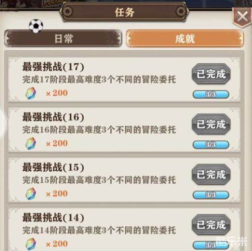2、每级冒险都有相应的成就任务,打3个最高难度不同民族的任务可以获取200钻石。