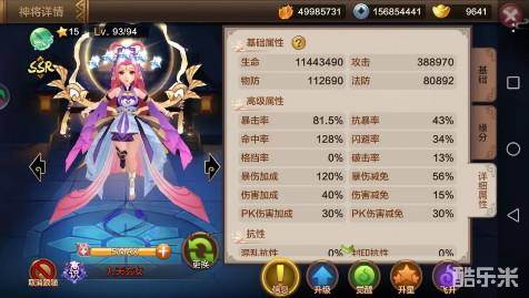 东皇钟配合两仪化生对于保命来讲简直是无情,试过的人都知道。最后上一张玄女裸妆93级的属性图~祝各位PK大胜