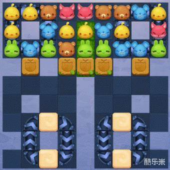2、棋盘左下和右下角均有2块奶油,会每步将周围的棋子变成新的奶油,非常的影响我们铺设草坪,且左下和右下角的空间非常狭小,奶油蔓延开来就很难消除。不过左下和右下角均有一条传送带,只要我们每走一步,均能仔细观察棋子布局,还是能找到消除机会的。