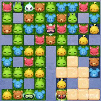 3、棋盘各个角落的空间非常狭小,匹配棋子来铺设草坪非常困难。所以有机会还需尽量连取特殊棋子,利用特殊棋子的范围消除,可以较为容易的给各个角落铺设上草坪。当然,如果能将特殊棋子进行组合使用,效果就更加明显了。