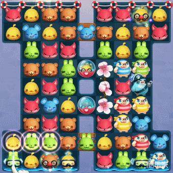 3、想要以三星成绩通过关卡,仅仅依靠步数奖励还稍显不够。我们在过关中还需多多连取特殊棋子,并将特殊棋子进行组合使用。利用特效组合的大范围消除,获得更多的消除分数,才能更容易的达到三星通关的目的。