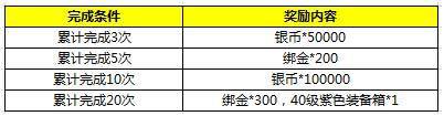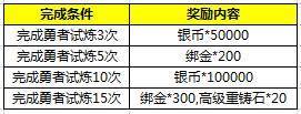 活动内容:活动期间内,玩家挑战完成勇者试练达到指定次数后即可领取奖励,每档奖励仅可领取一次。