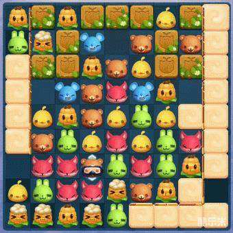 1、本关有大量障碍物,使我们的初始匹配空间变的非常小。木箱和可消栅栏,均需要多次攻击才能消除。奶油被可消栅栏挡着,我们无法在可消栅栏另一侧消除奶油,而奶油可以直接穿过可消栅栏,将旁边的棋子变成新的奶油。所以我们开局,需要尽快消除棋盘下方的可消栅栏,扩大我们的匹配空间,才能更好的去收集任务所需的超级玉米。