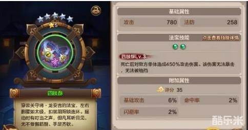 可以说是前期法宝未成形时,最好用的打蚩尤法宝了。选择当前星期的蚩尤高伤害神将配上满绿四肢酥,绝对可以在所有人都弱势的前期,对蚩尤带来极其高额的伤害,应该说是很长时间内追求蚩尤伤害的必备法宝了。