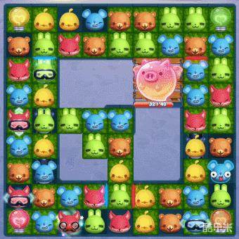 2、棋盘中还有一只精灵猪,其所在位置的移动木桥棋格,也需要铺设上草坪。所以在延伸草坪的同时,我们还要尽量连取特殊棋子。利用特殊棋子的范围攻击,一方面可以更快的将草坪延伸开来,一方面还能攻击分裂精灵猪,将精灵猪所在的移动木桥位置铺设上草坪。