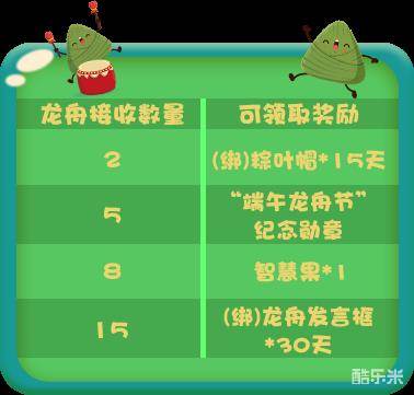 活动内容:在活动期间,700分及以上玩家每天登录游戏即可领取端午节专属讨好道具:“龙舟”一份!并且根据你的“龙舟”接收数量,还能获得额外奖励!