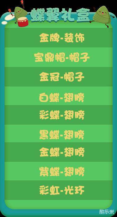 *每次打开蝶翼礼盒均有机会获得以下装扮之一,非绑定,有效期为7天,有机会获得90天有效期装扮。