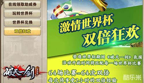世界杯比赛期间考虑到了玩家们要认真看球,那么肯定不能让玩家们的游戏进度就此落下,《破天一剑》手游将在每一场世界杯比赛期间都开启双倍经验奖励。在世界杯的欢呼声中也能轻松升级!