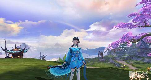 “蓬山青鸟”作为《天下》手游端午节主打的新时装,采用了蓝色锦缎作为面料,行走时衣摆映出层层水纹,再加上长长的水袖搭配点翠鬓簪,想来昭君在世也不过如此了。