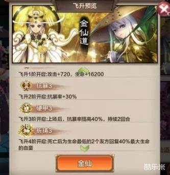 奶妈需要一副站得住的身板,金仙的抗暴才是我们真正需要的,而且金仙飞升四死亡后给己方回复血量相对修罗的给敌方造成伤害更加符合奶妈的身份,所以嫦娥飞升金仙。