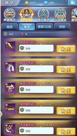 玩家挑战神禁之地而获取的货币点,可以去神装商店兑换装备,装备从蓝色品质到橙色品质不等,随着版本的更新,甚至加入了红色装备碎片的宝箱,不过相对的,高品质的装备兑换,都需要玩家达到一定的星星数才可以购买兑换!