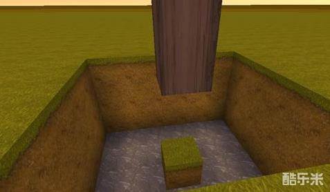 3、开始把周围挖开,格子可以为4*3,深度最少3格哦~长宽多少看大家喜好了。记得在树下留一个土块,空出位置。