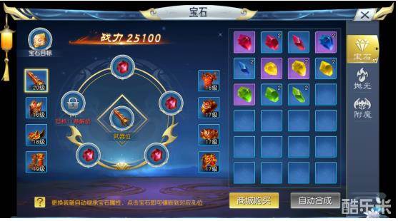 宝石系统在提升战力的同时,也能让仙师有选择的镶嵌更好,更适合自己职业的宝石,仙师在镶嵌宝石的同时,还可以获得额外的宝石战力提升。