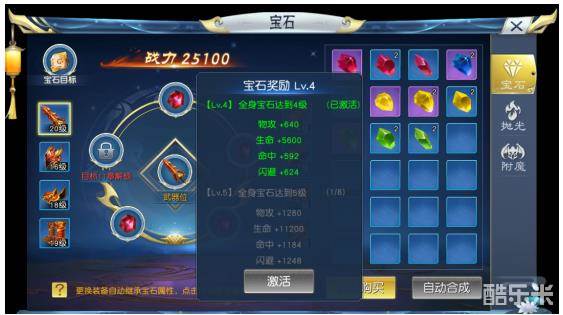 将宝石镶嵌在武器装备上,是提升战力最稳也是最长久有效的方式之一!