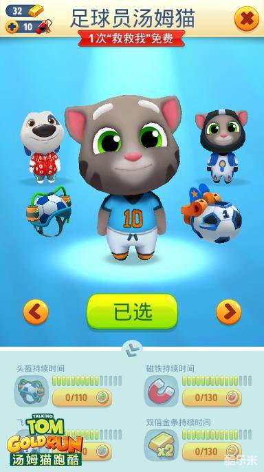 除了全新的足球员服装以外,会说话家族还为汤姆猫专门定制了世界杯版打Call头盔以及看球专用的飞行器,同样也是“球味儿”十足。头盔的造型借鉴了足球,并采用饮料帽的制作风格,让汤姆猫可以在跑酷中及时补充水分。飞机则用了蓝白块状足球涂装,乘坐在上面就好像足球飞起来一样魄力十足!