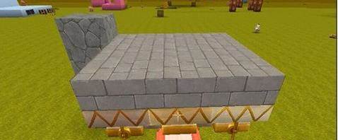 9.但有一个问题是,鸡腿容易飞出墙壁,所以大家可以在烤鸡装置外围再围上一层石块。保证鸡腿能被挤到半砖底部的收集传输器中。