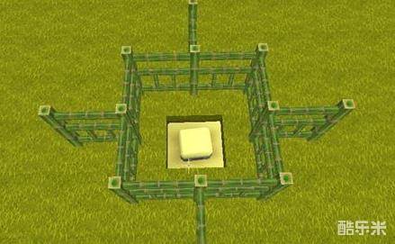 2、周围围好竹围栏,然后每个围栏的中间位置多放一个,用来拨怪物。