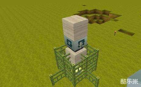5、加上旋转方块,不过旋转方块一定要朝下,所以可以先多盖几个方块来调整方向。