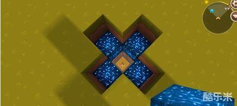 1、首先在空地上挖一个十字型深3格的坑,在四周放上方向朝上的金弹簧,中间放上感应装置;