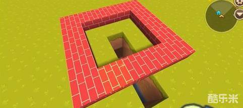 2、从围出来的区域中间向下挖四格并延伸出水池外;