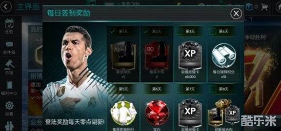 每日签到奖励是非常丰厚的,在第二天跟第八天奖励中都可以获得明星球员,所以每天上线是很重要的。