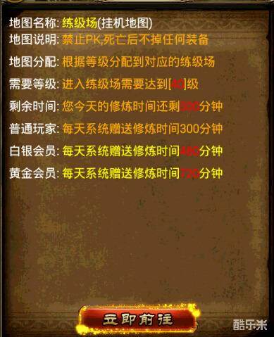 烈火屠龙》中设有练级场系统,专为玩家提供练级的场所。玩家在沙漠之城练级使者(41,137)处,即可进入练级场。