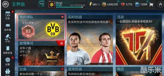 点击位于游戏主界面左上区域的“我的球队”进入我的球队界面