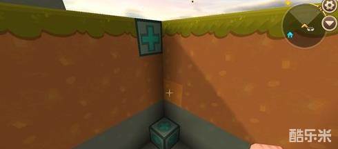 2、在坑的一端底部放置标记器+,顶部放置一个滑动方块,+号朝坑;
