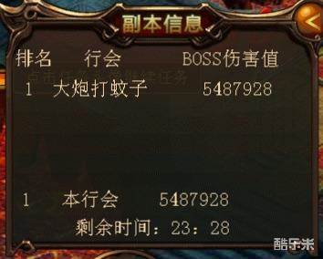 4、玩家可在右边信息栏查看自己的行会对BOSS的总伤害值,伤害值越高,排名越高,活动结束后获得的奖励就越多。