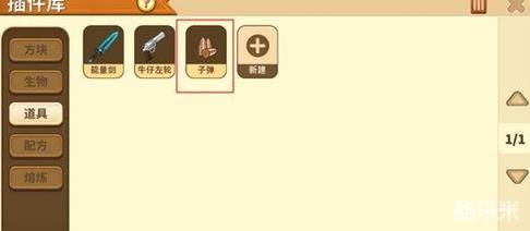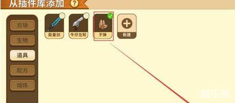 2、在插件库的道具一栏内,点击子弹,我们需要修改下子弹设定。