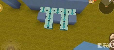 3、在按钮的后面放好电能增幅器,二和四后面放三个电能增幅器,一,三,五的电能增幅器放上方块。