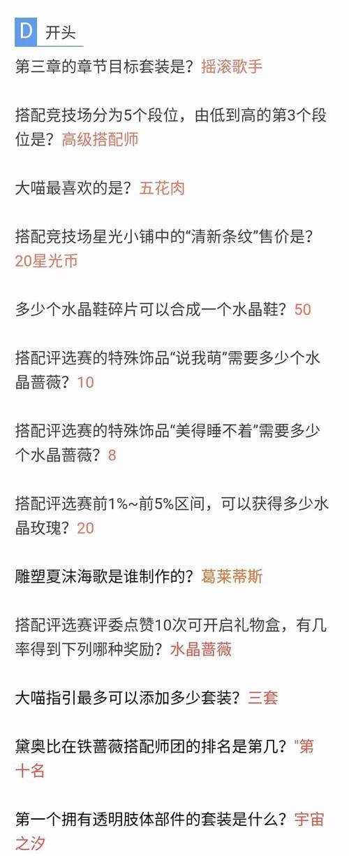 奇迹暖暖20日奇迹大陆知识问答答案大全