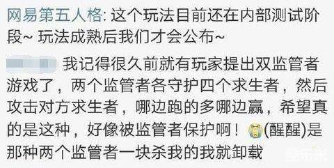 看上图有一位网友提供的脑洞“双屠夫”玩法,大致就是:A阵营(一屠夫+四求生者),B阵营(一屠夫+四求生者),A阵营屠夫抓B阵营求生者,B阵营屠夫抓A阵营求生者。