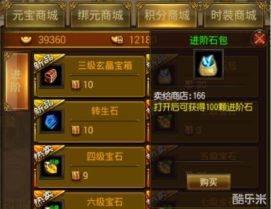 ③积分商城购买【进阶石包】,打开后获得进阶石。