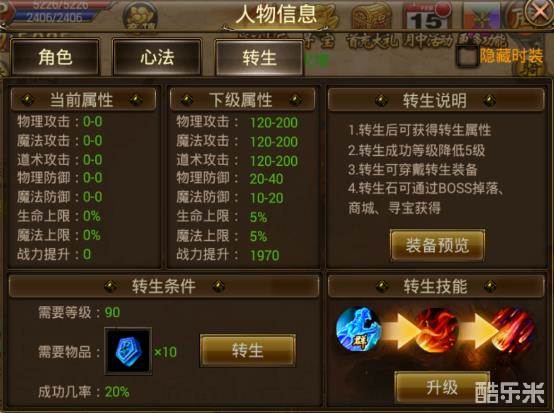 转生后可拥有转生属性,包括攻击、防御、生命上限等各属性都将获得大幅提升。