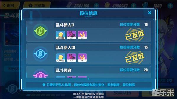 除了解除门票限制,新版的乱斗竞速还升级了全新的段位奖励系统~