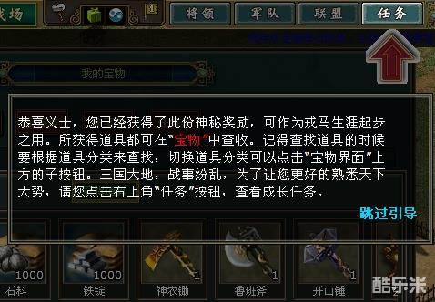 加入玩家是第一次创建人物进入游戏,则会自动触发《热血三国》游戏引导内容。