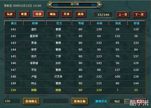 点击“统计”按钮,您将可以对所有的“城池”、“资源”、“产量”、“将领”、“军队”、“城防”进行查看。