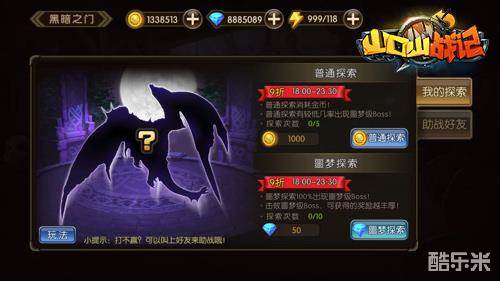 黑暗之门分为两种探索形式,普通探索消耗金币,BOSS为普通BOSS,精英BOSS,和噩梦BOSS,而噩梦探索消耗钻石,召唤的必为噩梦BOSS。难度递增,奖励同样也会递增。你的努力和你的回报永远成正比。