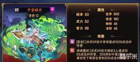 于吉本身是一个比较越血少的武将,很容易被对方轻易的秒掉,其主要是以毒伤为主,那么我们放在毒伤队伍中拥有较强的效果,但是适合放于后手,这样能有效的避免掉掉血,但是这个武将在前期想要获取并不是很容易,而且吃资源比较的厉害,建议大家在后期或者高v使用!