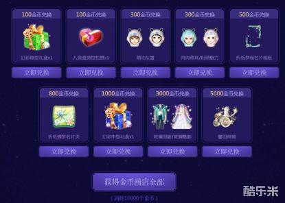 玩家通过积攒金币,可以兑换想要的物品哦,本次金币商店的物品将进入幸运柜!共价值11100金币的非卖,打包只需要10000就能带走!