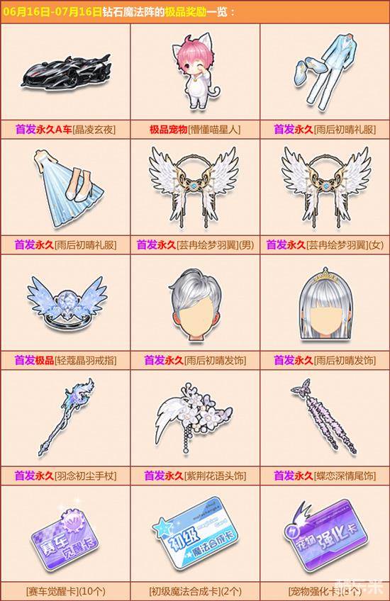 6月16日-7月16日,使用召唤卡召唤极品道具,即有机会赢取首发A车【晶凌玄夜】、首发极品宠物【懵懂喵星人】、首发永久雨后初晴套装系列道具!