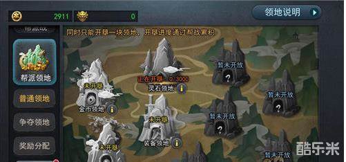 帮派领地同时只能开垦一块领地,开垦进度通过帮战累积