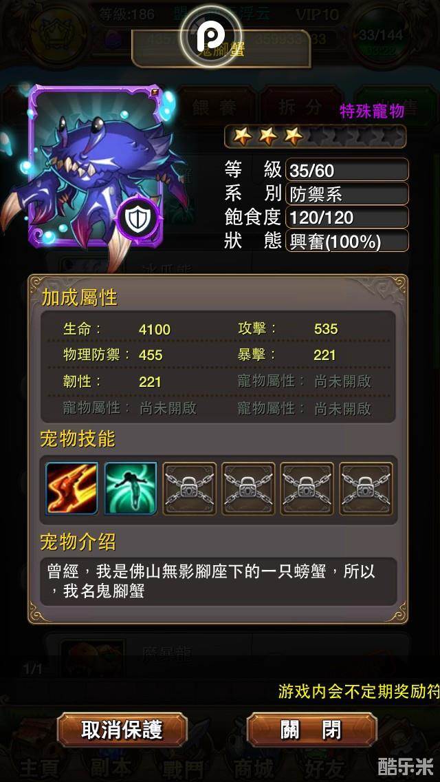 3.拆分的宠物属性没有捕捉回来的高,例如暴击闪避韧性等属性,大多为109,106。
