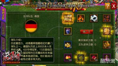你最爱的球队是哪只?今年的世界杯他们能否胜出?你敢不敢为他们加油助力,赌上一把?活动期间(2018年6月12日9:00-2018年7月17日9:00),全区服老铁都可以点开世界杯主题界面参与活动。