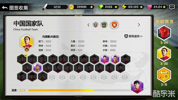 从图签收集系统中玩家能获得高等级的球员卡和装备,图签收集系统将中超球员按现实中球队进行分配,在每一队中只要收集到一定数量的球员就获得物质奖励,具体奖励如下:收集两名奖励50钻石,5名该队的A球员卡一张,15名奖励随机S级球员礼物盒,20或23或25名奖励该队S级球员卡一张,收集满奖励该队的球队队服,球队队服可用于改变战斗中球员的队服。