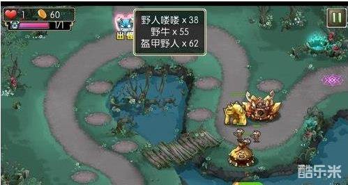 1、本关需要注意的是;如下本图在普通难度下兵灵挡黑狗会跑狗,所以要在狗最多的时候用一个缠绕+淋雨,之后就没有难度了。初始布局一个法师塔一个箭塔,法师塔升级至光明法师塔