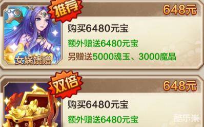 在游戏中,玩家可以使用648元人民币购买元宝,可以一次性拿到12960个元宝和500魂玉、3000个魔晶,对于喜欢用元宝抽神卡的玩家,可以考虑。目前这个充值活动可以说是非常优惠的。