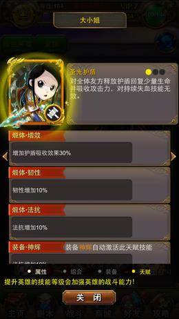 圣光护盾,对全体友方释放护盾回复少量生命并吸收攻击力,对持续失血技能无效